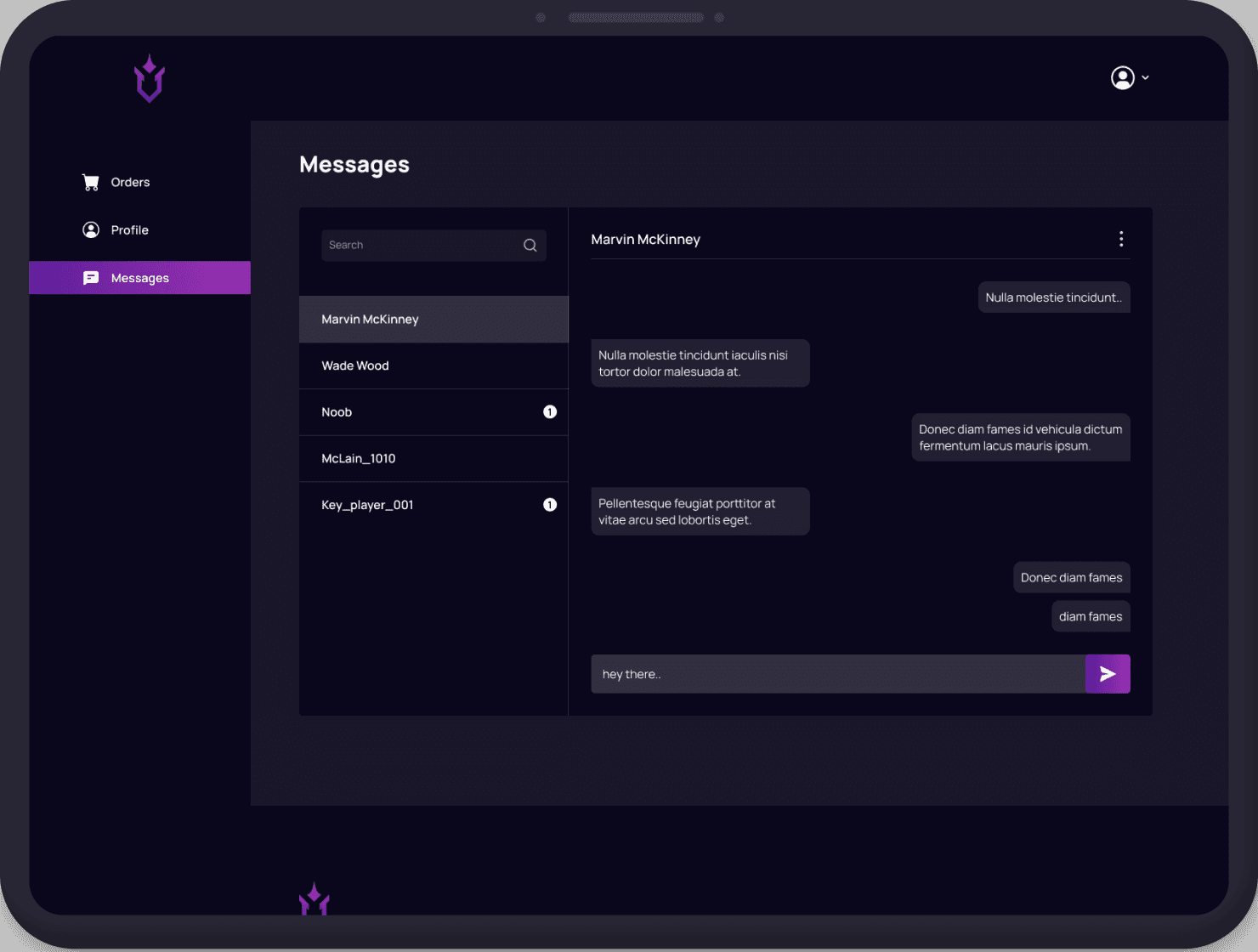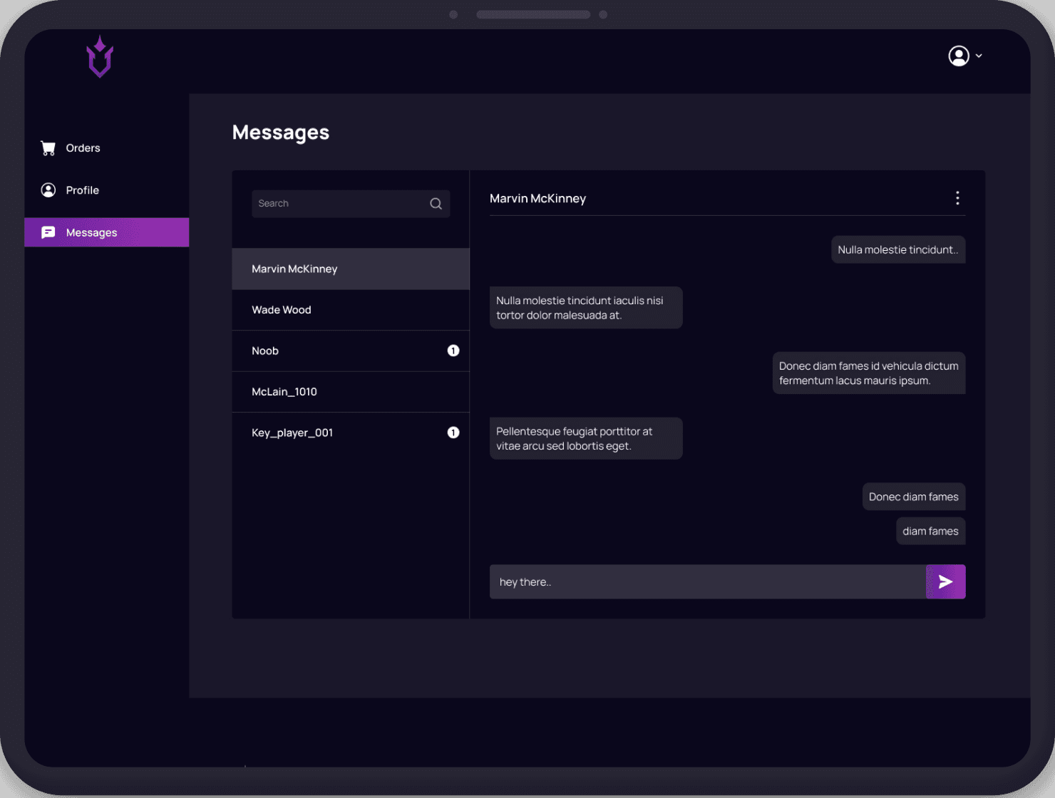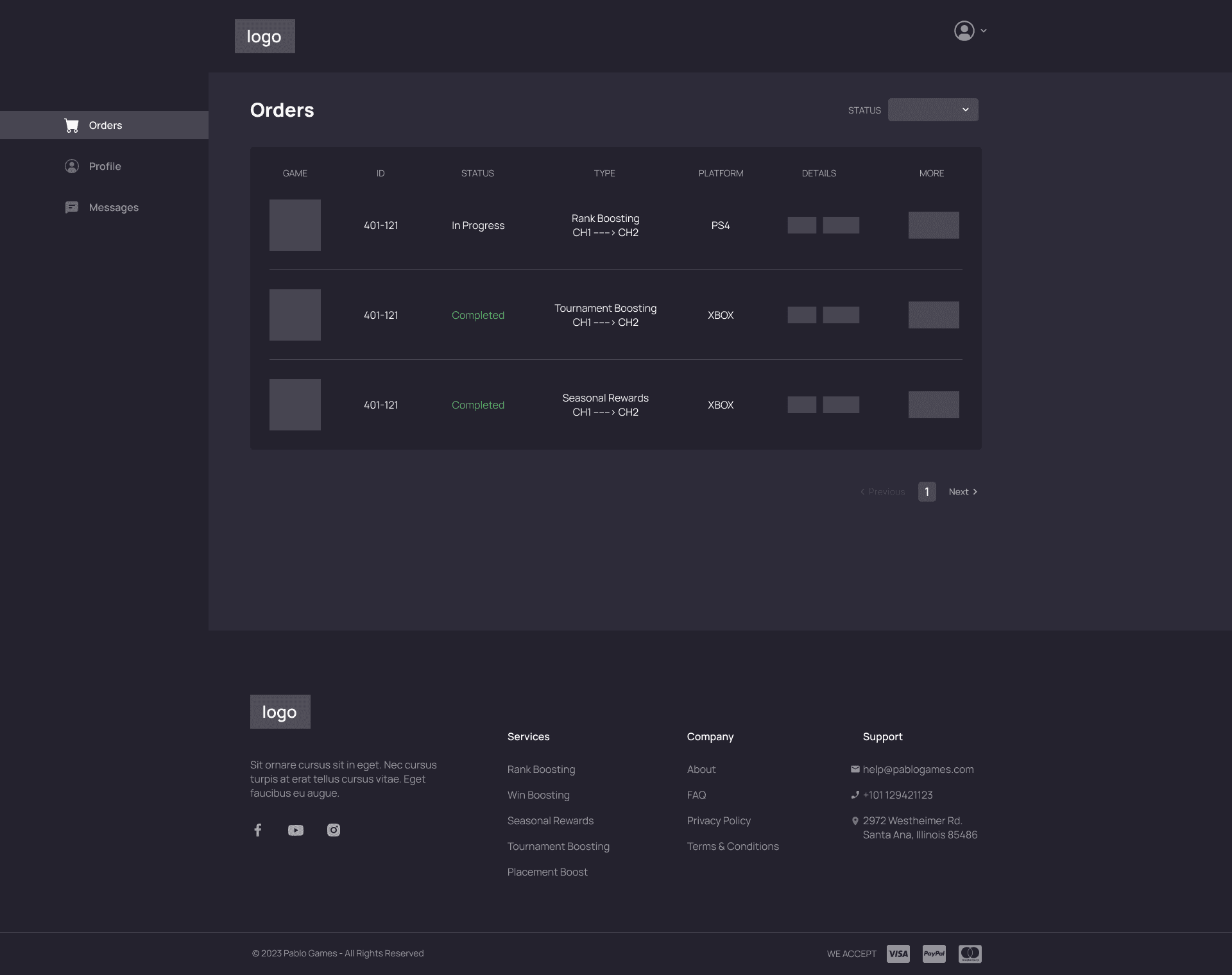 Client dashboard Orders