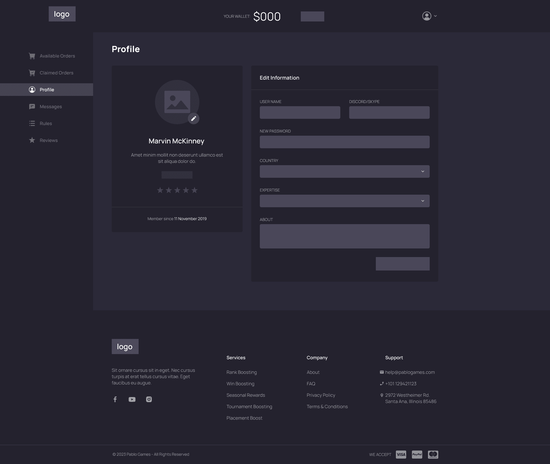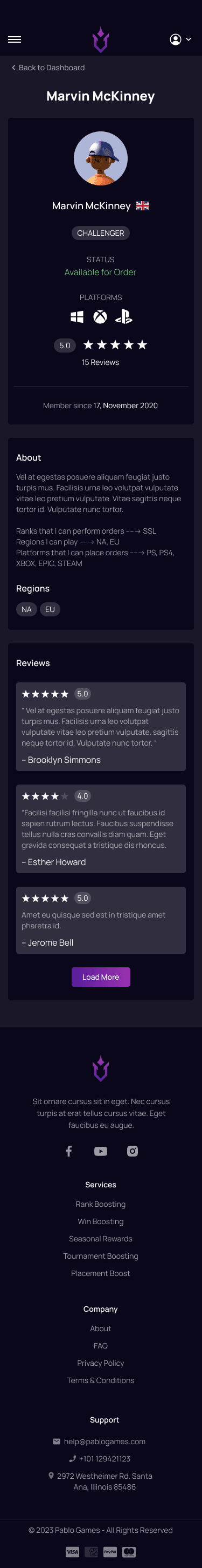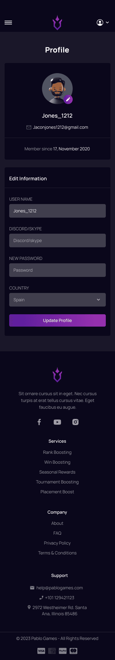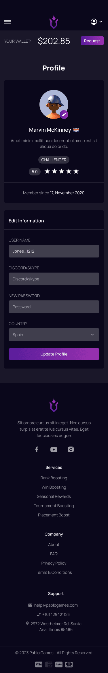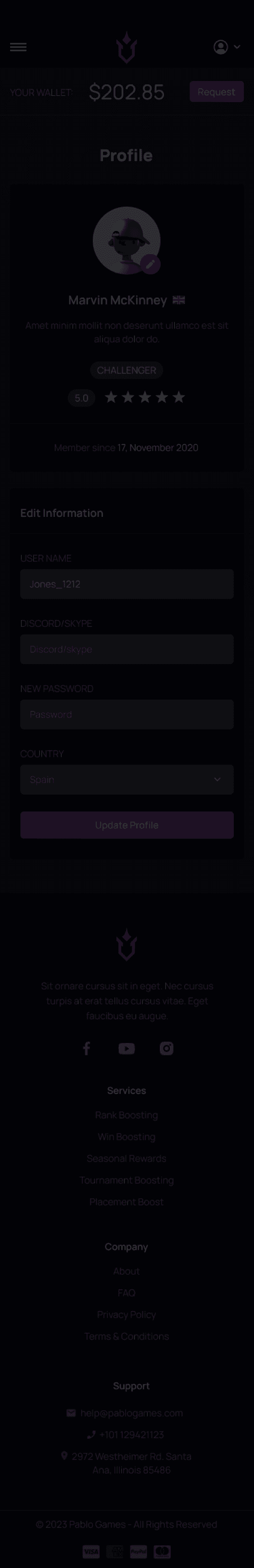 Players dashboard My profile