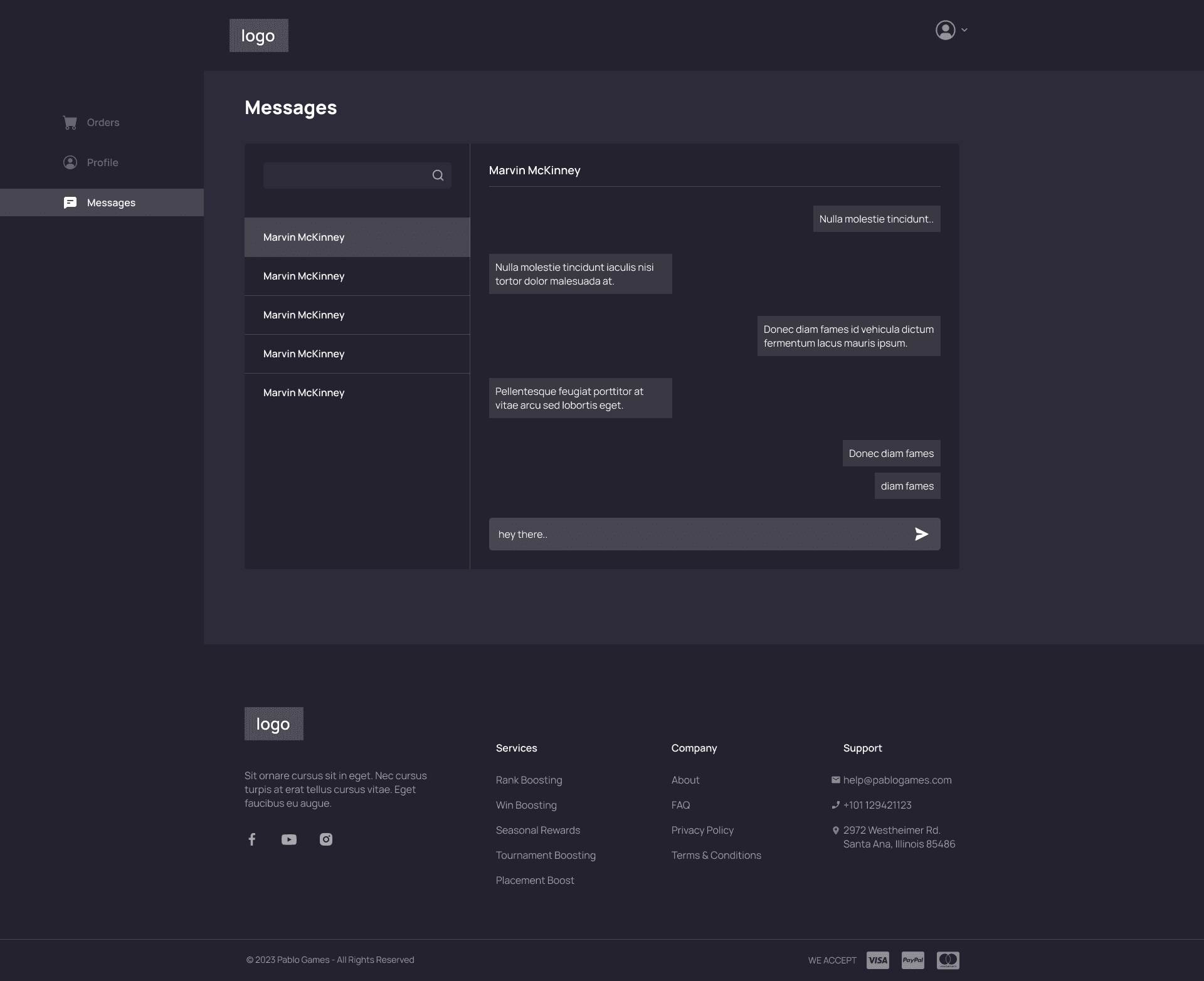 Client dashboard Messages